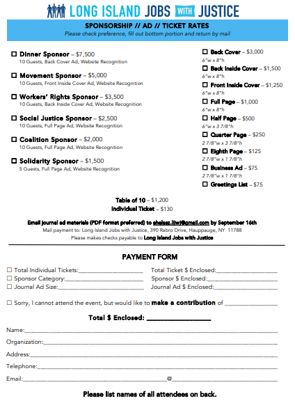 You can also download and print the invitation and RSVP form and mail to: Long Island Jobs with Justice, 390 Rabro Drive, Hauppauge, NY 11788