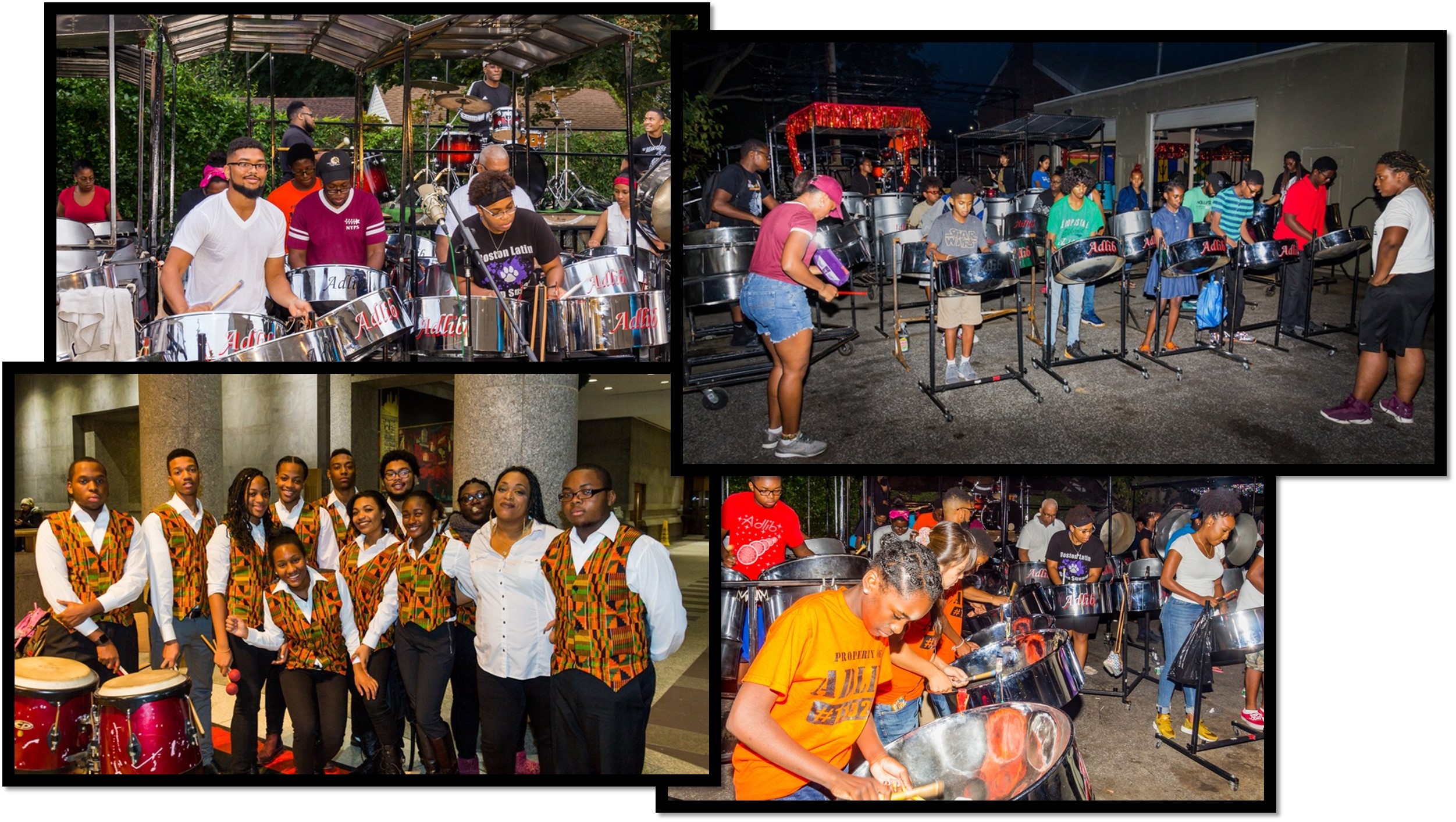 Based in Freeport, “the Adlib Steel Orchestra was founded in 1989 by a group of Trinidadians who wanted to preserve their culture in the United States. It was incorporated in New York in 1995 as the Adlib Youth and Cultural Organization, with the emphasis shifted to providing young people the opportunity to learn and perform on the steelpan, as well as exposing them to other aspects of Caribbean culture…Adlib has an active program teaching people of all ages how to play the steelpan (referred to by some as the steel drum). The unique note placement sequence on a tenor pan makes it an ideal tool to learn the fundamentals of music theory. Many of Adlib’s students go on to play for the band, and some play the steelpan and other musical instruments in their schools.”