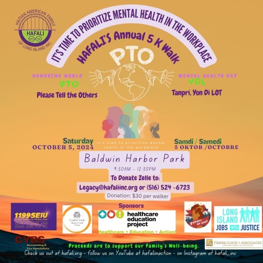 Join the Haitian-American Family of Long Island (HAFALI) for their annual Mental Health Walk this weekend at Baldwin Harbor Park! HAFALI is an inspiring local community organization supporting LI’s over 20,000 Haitian residents, and was honored by LIJWJ at our 2023 awards dinner. It’s a great chance to enjoy the fall weather, get to know other folks, and restore yourself with the warmth of community!