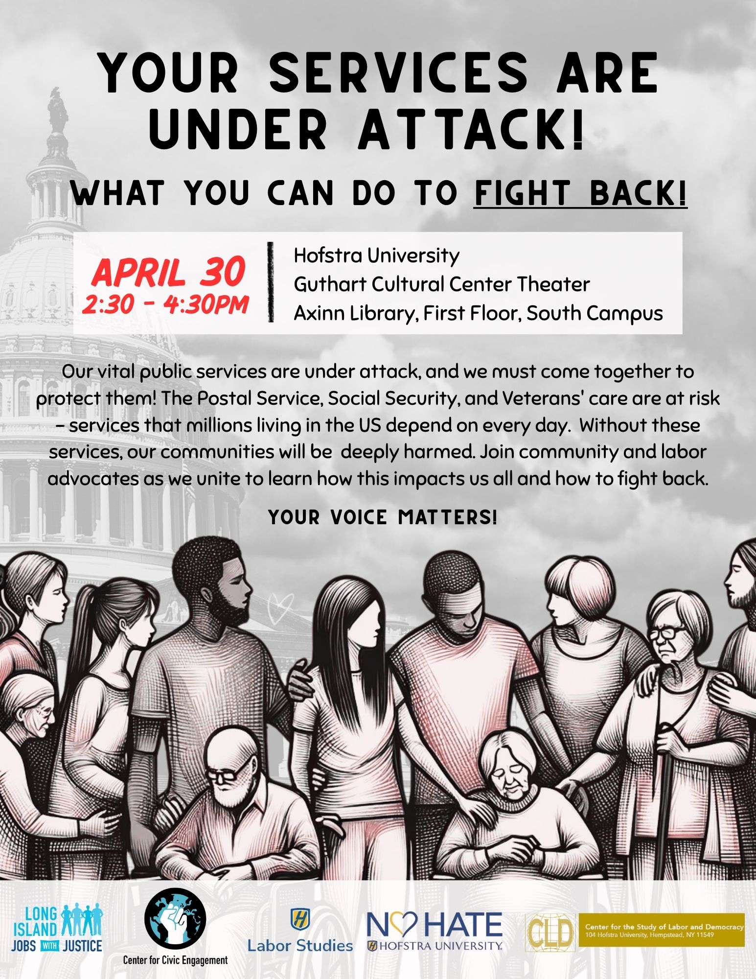Speaking of building lasting power for workers on Long Island, there are actions we can all be taking right now to defend against the assaults on our local federal workers who do so much for our communities. LIJWJ, Hofstra University’s Labor Studies Program, Center for Civic Engagement, and the Hofstra Cultural Center and the Center for the Study of Labor and Democracy are hosting an event that will center federal workers, and share ways to support them at this critical moment.