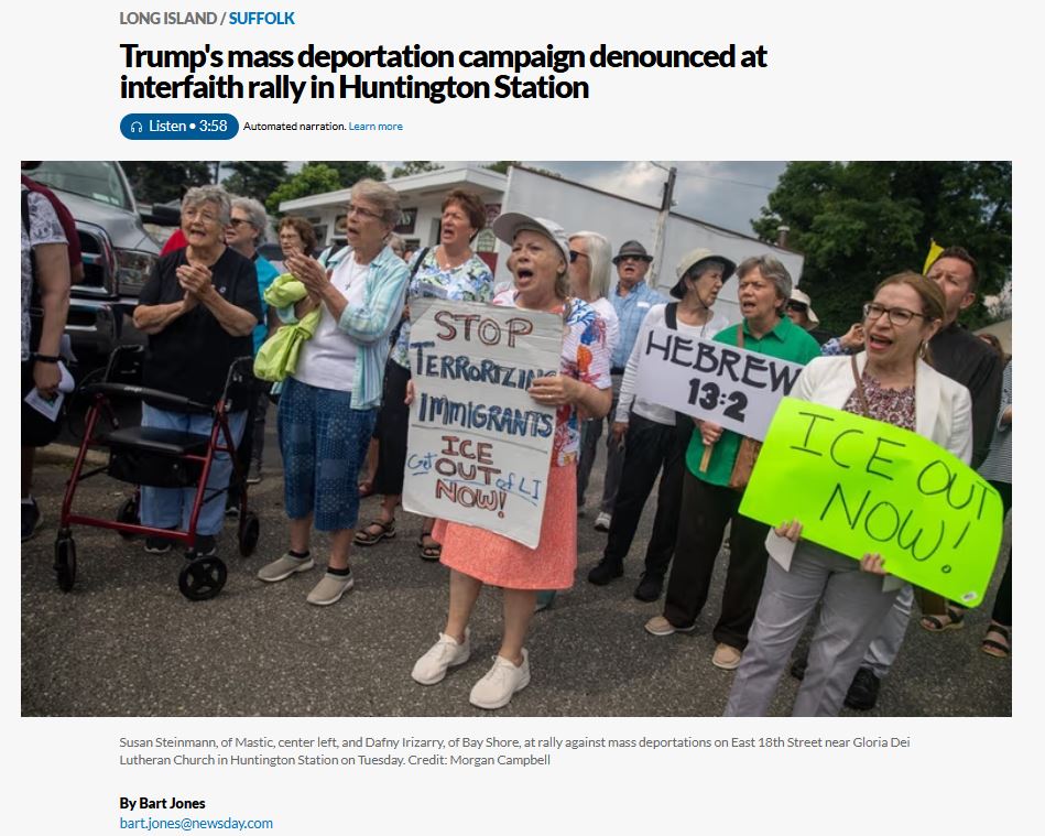 Below are links to ad your name to the petitions to join a growing chorus of Long Islanders standing for justice, including 215 LI faith leaders who have signed on to a joint letter condemning ICE’s actions.